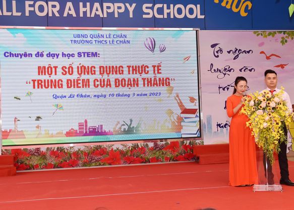 Với những lý do đó, hôm nay, ngày 10/3/2023, trường THCS Lê Chân tổ chức chuyên đề dạy học STEM: Một số ứng dụng thực tế “Trung điểm của đoạn thẳng ”. Về dự chuyên đề của trường có ông Phạm Sĩ Tuyên - Trưởng phòng GD&ĐT quận Lê Chân; Bà Bùi Thị Ngọc Quyên - Phó trưởng phòng GD&ĐT quận Lê Chân; lãnh đạo, chuyên viên phòng giáo dục đào tạo; đại diện Ban giám hiệu cùng các thầy cô giáo dạy bộ môn toán, bộ môn KHTN( phân môn Vật lý) của các trường trong quận.