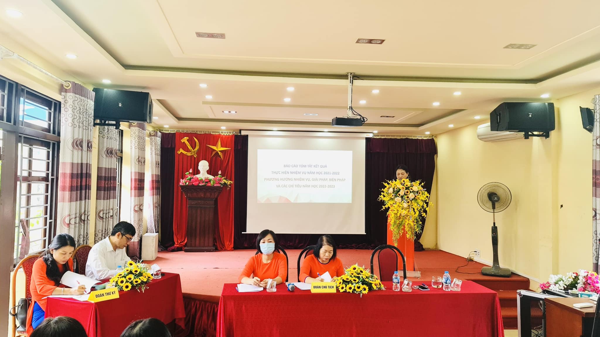 - Đ/c Nguyễn Thị Phương Thư- Chủ tịch công đoàn báo cáo kết quả phong trào thi đua năm học 2021-2022; công bố đăng kí thi đua năm học 2022-2023;