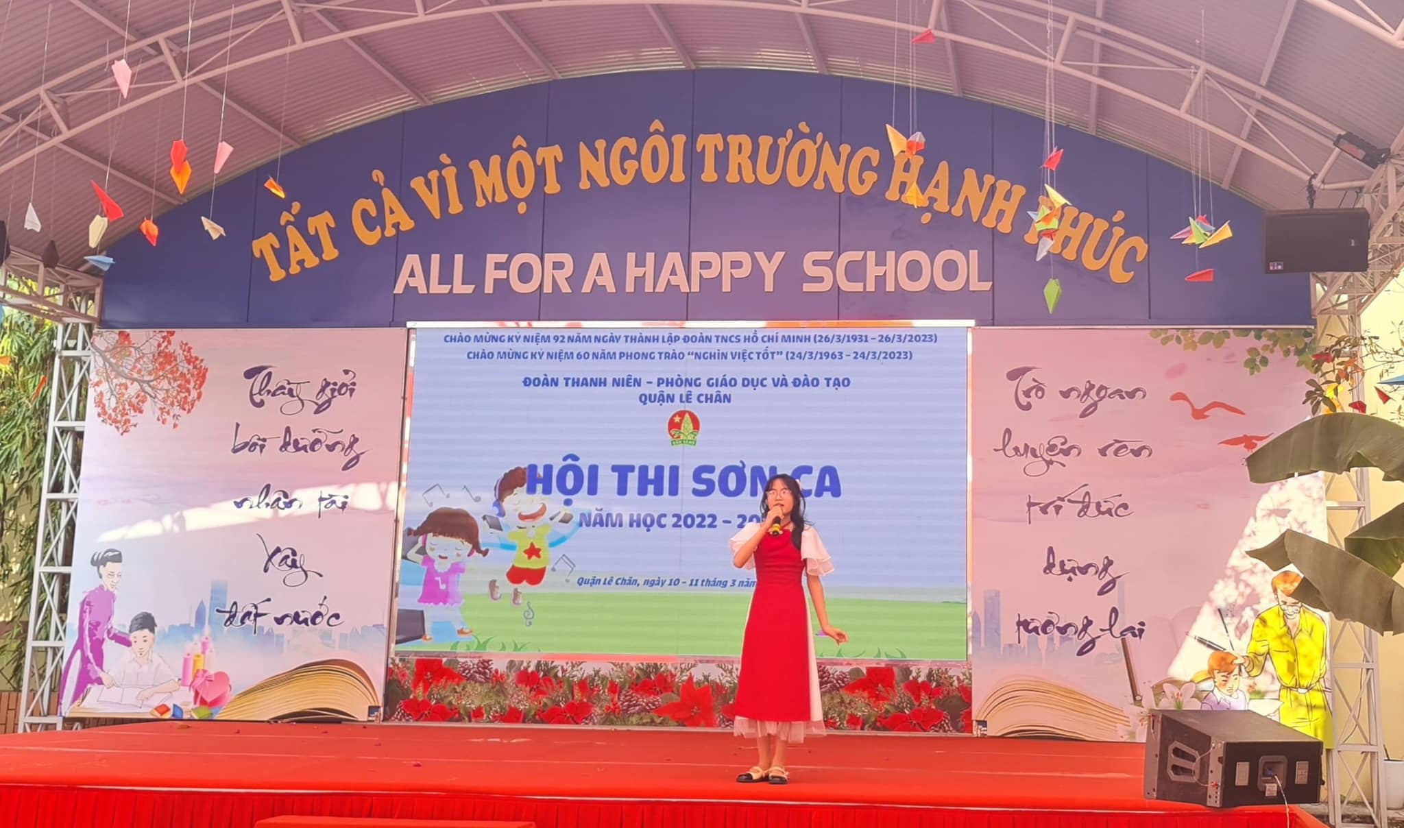 và sáng ngày 11/3/2023 trường THCS Lê Chân rất vinh dự được chọn là nơi tổ chức Hội thi sơn ca cấp quận. Tham gia hội thi này có hai sơn ca của trường THCS Lê Chân là em Trần Minh Anh lớp 9A5 và em Trịnh Nguyễn Hải Anh lớp 7C5. Tiết mục của các em được đầu tư, chuẩn bị kĩ lưỡng từ trang phục, âm thanh, đến kỹ năng biểu diễn. Bằng sự miệt mài tập luyện, với giọng hát ngọt ngào, tiếng hát của các em đã chinh phục được ban giám khảo và các cổ động viên tham gia. Xin chúc các em sẽ đạt giải thật cao trong cuộc thi nhé!